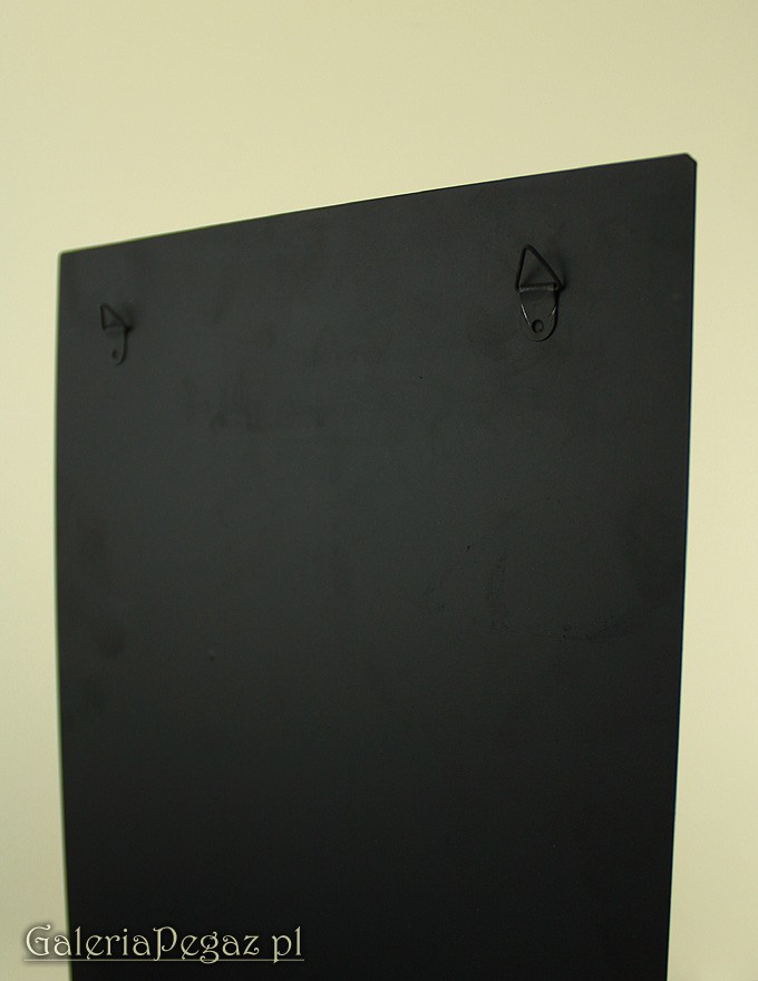 Plakat został wykonany ze sztywnej blachy i posiada otwory po rogach do powieszenia.