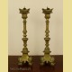 Para dużych, mosiężnych, sakralnych lichtarzy osadzonych na trójbocznych stopach – całość nawiązuje swym kształtem do świeczników z okresu renensansu. Trzon zdobią symetryczne dekoracje. W lekko wypukłych talerzykach osadzone są kolce na świecę. Świeczniki masywne, dobrze zachowane, znakomicie będą pełnić funkcję dekoracji wnętrza. Cena za parę (komplet.